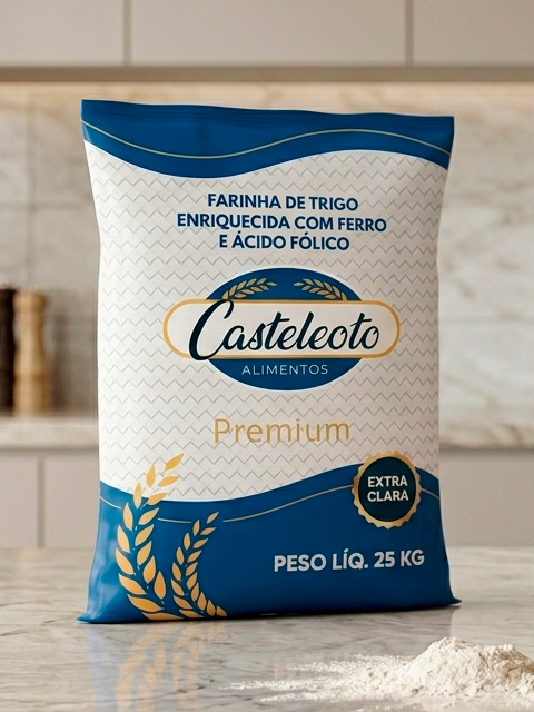 Indicada para receitas que exigem qualidade e rendimento, a farinha de trigo Casteleoto Premium contribui para massas mais homogêneas, claras e com ótimo resultado final.